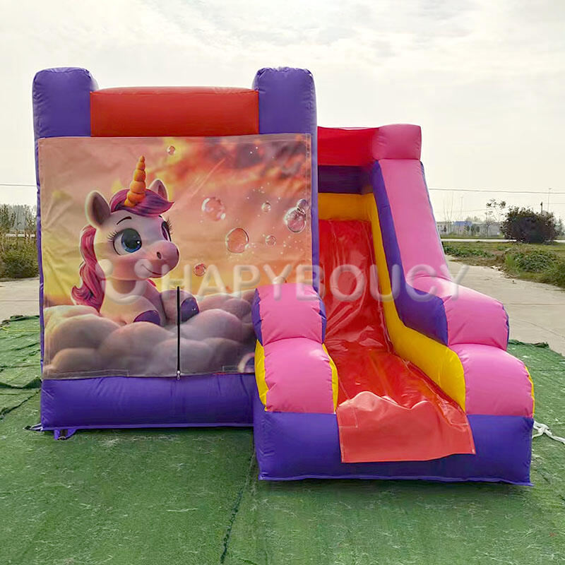Inflatable Jumping Castle with Slide Combo Banner Bounce House |